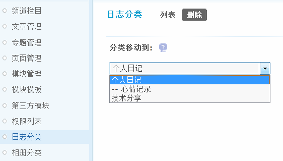 上图说明该分类下有日志,可以选择将此分类下的日志移动到其他日志分类中,然后提交即可。