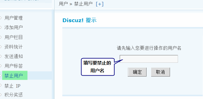 禁止用户有效期:选择禁止用户的时间,在有效期过后该用户可以自动解除限制,成为普通用户。