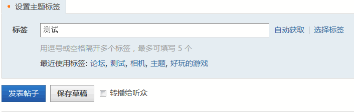 那么该会员在前台发帖时就可以使用标签功能了,如下图所示:
