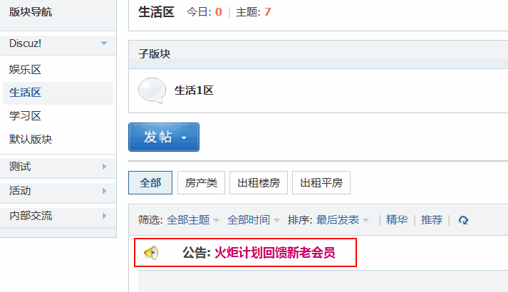 文字公告: 直接输入公告内容,支持 Discuz! 代码,点击该公告将跳转到公告详细信息页面。