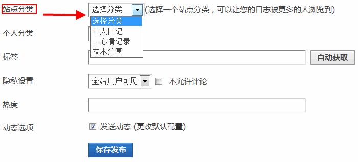 系统分类必填:选择“是”发表日志的时候,必须选择一个系统分类才可以。
