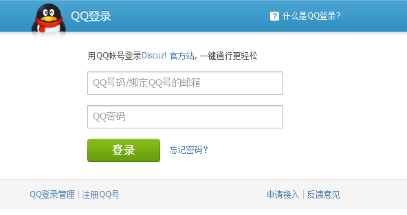 QQ互联提供了“QQ帐号注册”、“QQ帐号登录”、“分享到QQ好友和群、QQ空间、腾讯微博、朋友网”、“回帖同步到微博”和“微博回流”等功能,使用QQ账号注册、登录,可以大大降低游客注册、登录论坛的门槛,提升网站游客到注册用户的转化率,优化用户注册、登录体验,增加用户黏性。论坛用户还可以将在论坛发布、分享、转播的信息即时同步到QQ好友和群、QQ空间、腾讯微博和腾讯朋友,使论坛内容通过QQ空间、腾讯朋友好友关系、腾讯微博收听关系得到进一步的传播,微博回流也进一步增加了站点内容量,从而提升网站的访问量和用户数。下面我们一起来了解QQ互联的具体使用:
