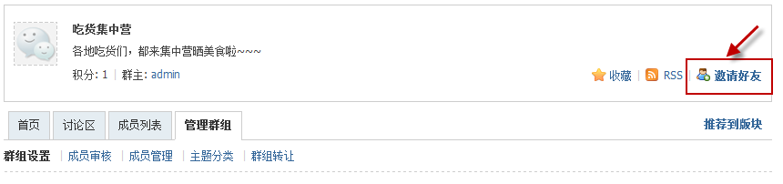 推荐到版块 :将群组推荐到论坛的版块,将会以推荐群组显示到主题列表区域上方
