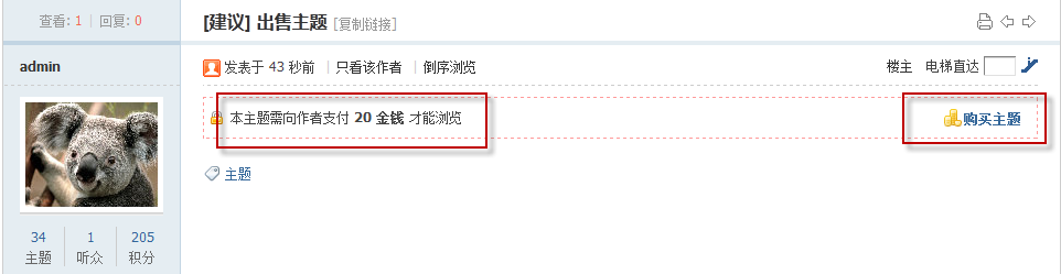 当扩展积分项被设置为交易积分后,用户就可以用这些积分来进行站点的虚拟物品或实体物品的交易,形成一套虚拟的货币流通机制。虚拟物品交易包括主题、附件的购买,悬赏、评分的给予,以及商品的交易等。