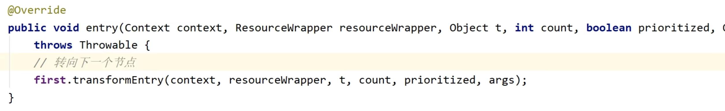 该chain就是DefaultProcessorSlotChain 单向链表转换操纵对象即从first节点转换下一个节点