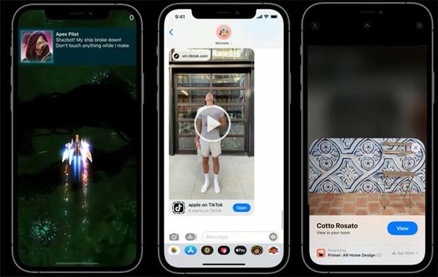 固然苹果官方的介绍视频里重要介绍了轻 App 的各种线下使用场景,但并不代表轻 App 只能用于服务类 app。你可以使用轻 App 来试玩付费游戏,在 iMessage 里预览抖音视频,还能把它和 AR 相结合,直接把墙纸贴到家里的墙面上——轻 App 是 app 的一个片断,这个片断可以是一个实用功能,也可以是一段视频、一局游戏、一个滤镜、一张 AR 海报。