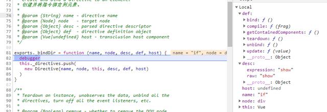 根据上面的分析,我们知道对于v-if这个指令最终肯定调用了_bindDir方法: