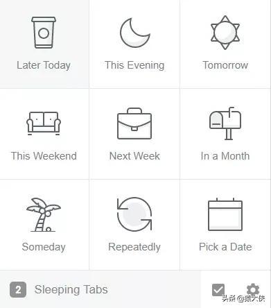 就可以用到Tab Snooze,它的功能就是帮你生存文章、视频以及待服务项等,后面空出时间来了可以慢慢看。