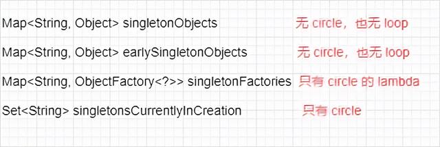 所以第一级缓存: singletonObjects ,第二级缓存: earlySingletonObjects ,第三级缓存: singletonFactories