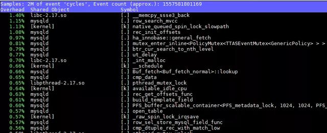 分析:再次观察体系资源情况,CPU利用率依然在50%左右,IO和网络没有压力,猜疑关键瓶颈是数据库内部的资源等待。但是数据库内部的等待事件列表已经看不出明显的问题,我们转而通过perf来继续查找根因,发现存在ut_delay的热点函数,以是判定是自旋锁相关的利用存在问题:
